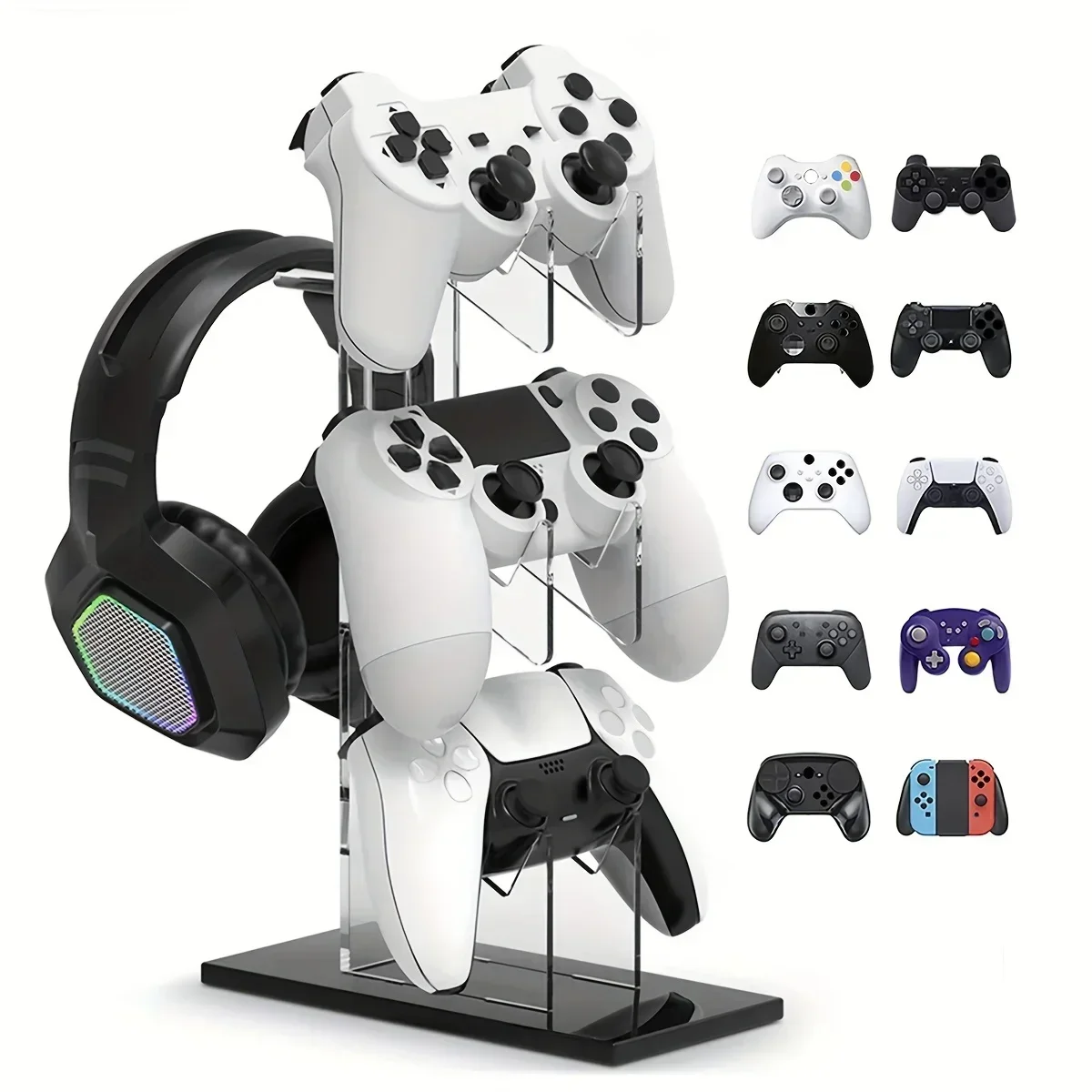 The Universal Three-Layer Headset Stand is a versatile desktop storage solution designed to organize your headphones, game controllers, and console accessories in one compact space. With a 3-tier design, it keeps your gaming setup neat, accessible, and visually organized—perfect for desks, gaming rooms, and home offices.